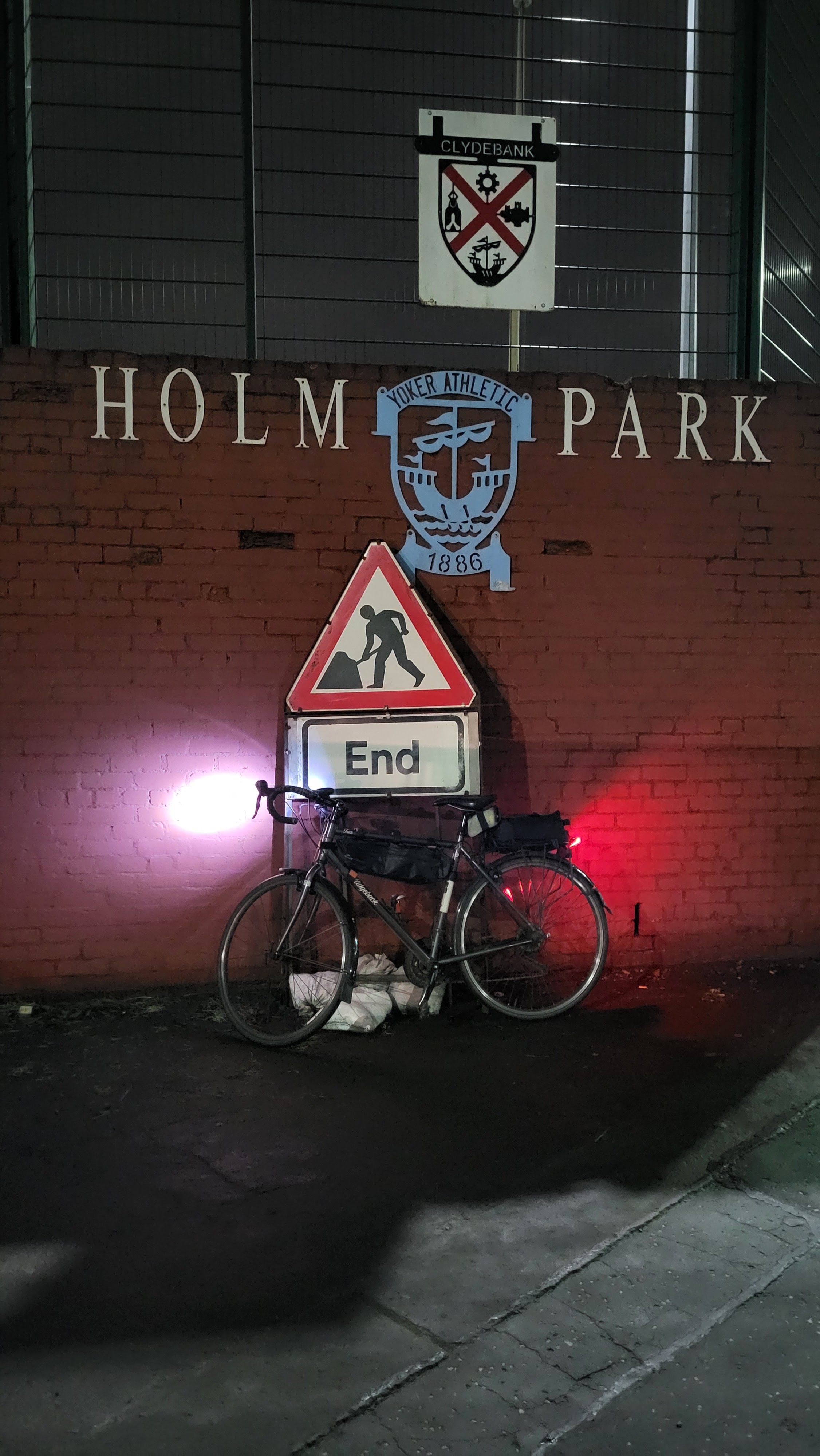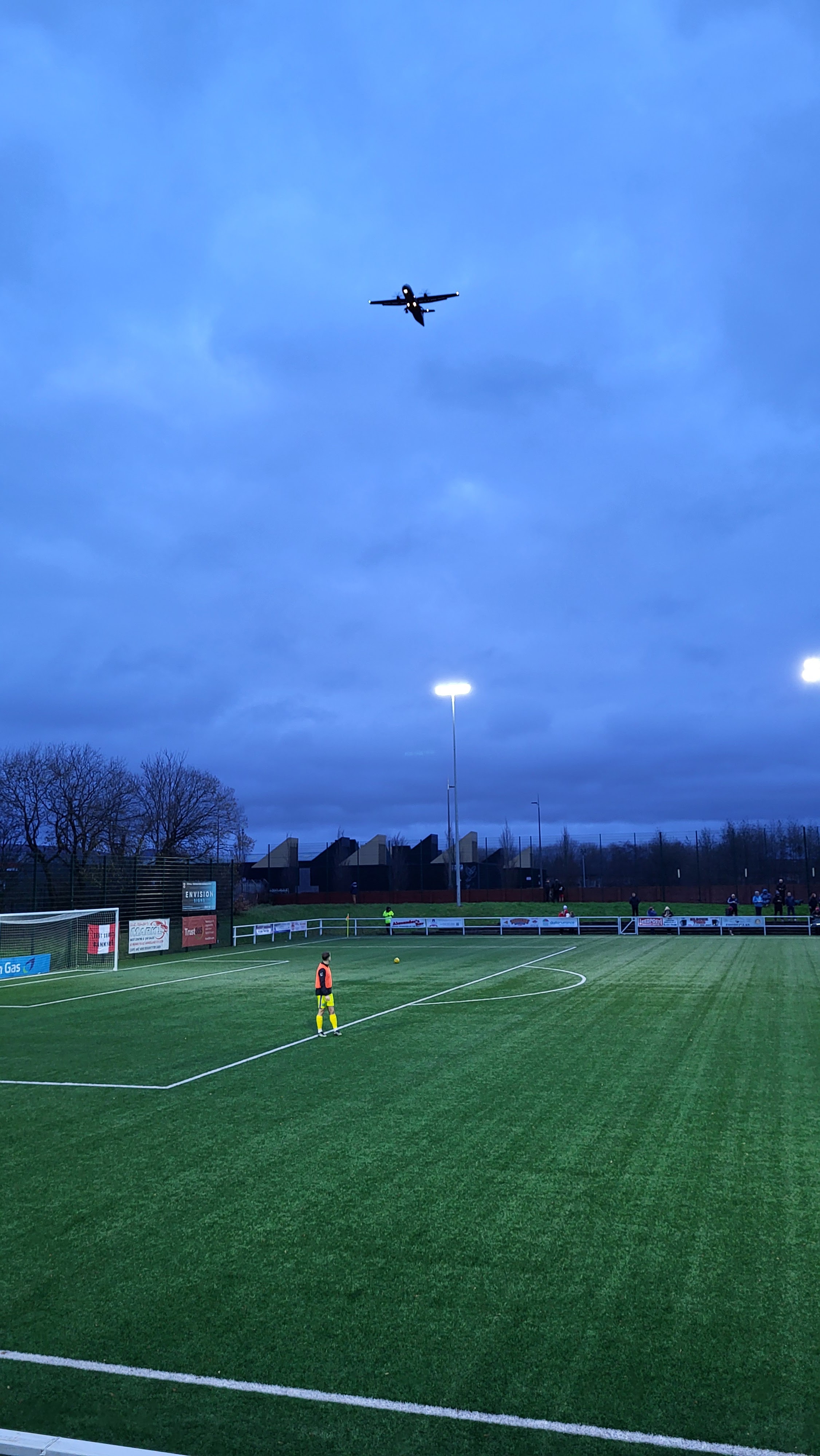 We have reached the half way point in this season’s odyssey, but have yet to visit a senior ground. This round’s journey involved a train ride into Glasgow and then the ride out west, way out west, to Clydebank. The canal might have made for a nicer ride, and with more time I would have, but I pushed on through the increasingly unappealing industrial landscape to Holm Park, the council-owned ground Clydebank share with Yoker Athletic. And yes, it is on the bank of the Clyde, a good hoof out of defence and the ball would be in the river. We are also on the flight path into Glasgow airport, jets crossing above the pitch every few mins, good chance that the afrementioned clearance would hit the undercarriage of an incoming flight.
