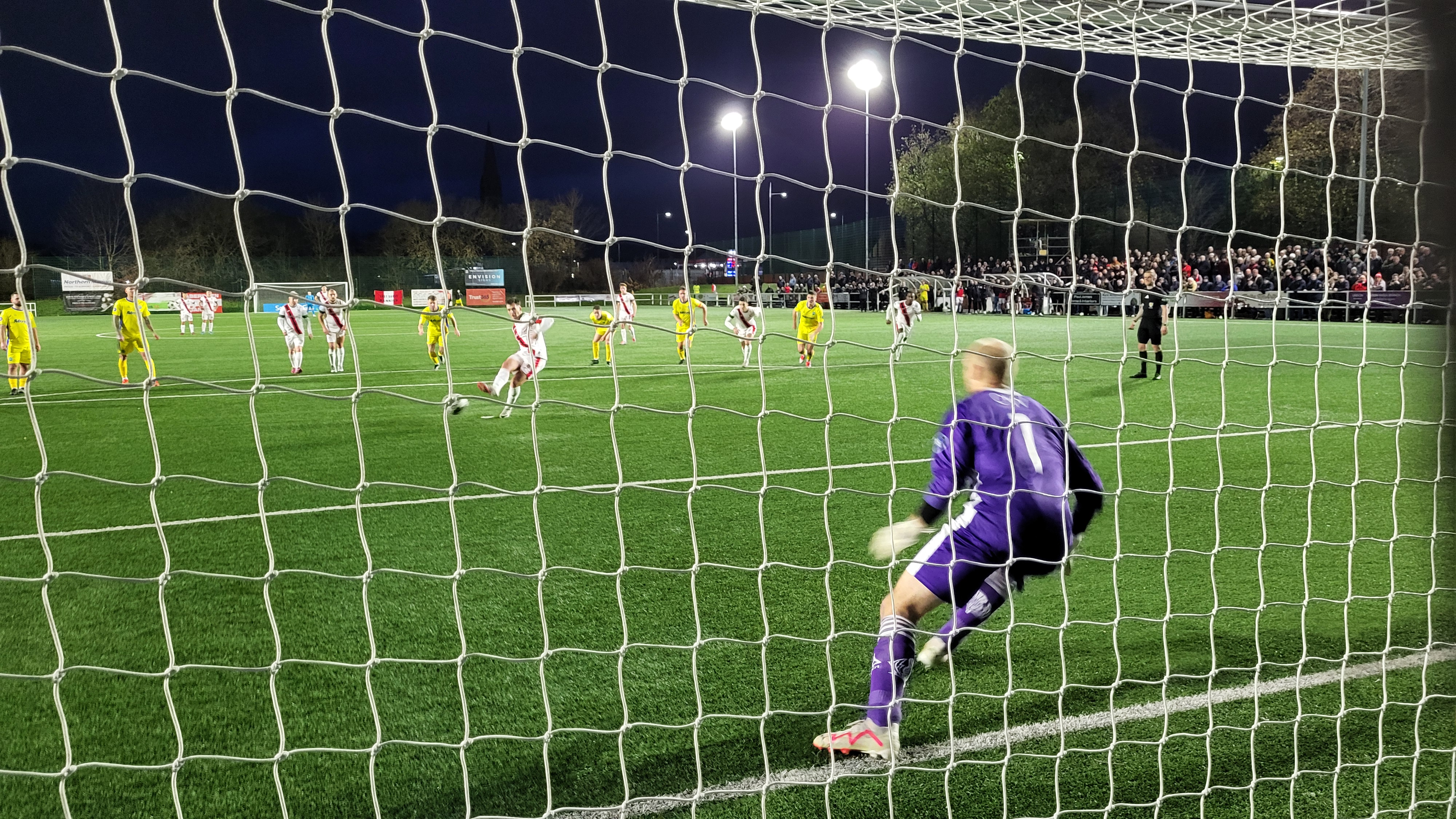 The teams take to the plastic pitch before almost 1000 fans, with a good few from the north. Exchanges pretty even early on, lots of toil, not much goalmouth action. Until Hamish Munro lunged into a tackle in the centre circle and was dismissed. Backs to the wall for Buckie after that, though as the second half opened in the gathering gloom, neither side looked like they really wanted to be going through. That is before the introduction of Tiwi Daramola, on loan from East Kilbride. He exploited Buckie’s exposed right flank and a deft flick from Gallacher left a clear chance for Nicky Little to fire home. Place erupted – and I missed the goal as I was repositioning myself for the latter stages. Story of my life.